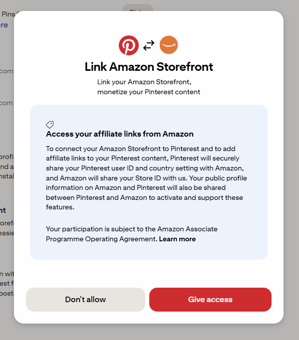 Once approved for the influencer program, you can link your Amazon storefront directly to your Pinterest profile.