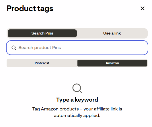 The most exciting feature is the ability to tag Amazon products directly in your pins.